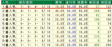 単勝1番人気が圧倒的な強さです。 過去10年間で、複勝率90%!
