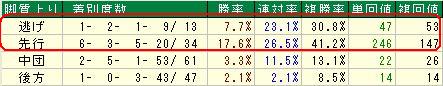 逃げ、先行馬が良い成績です。
