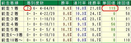前走1着馬が圧倒的な成績ですね