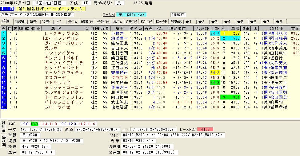 ローズキングダム 朝日杯フューチュリティステークス(朝日杯FS)2009 JRA競馬結果 払い戻し