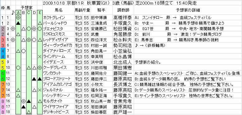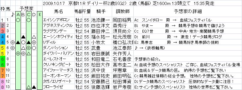 2009.10.17 土曜日の京都開催の「鉄板軸馬」です。