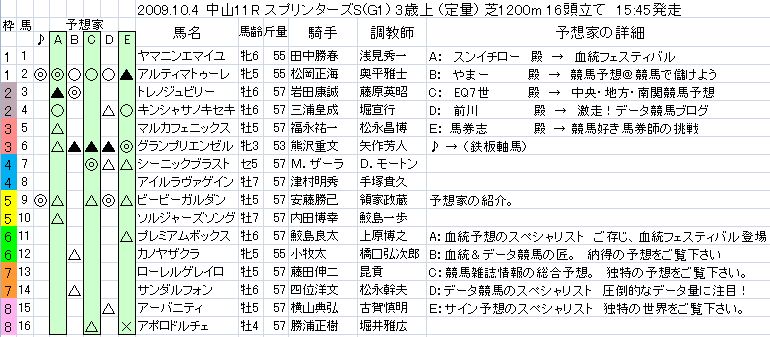 スプリンターズS 2009 データ分析予想