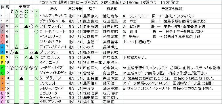 2009.9.21 月曜日の阪神開催の「鉄板軸馬」です。