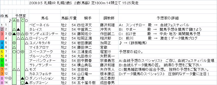 2009競馬予想【札幌2歳S】【ブロガー競馬新聞】公開