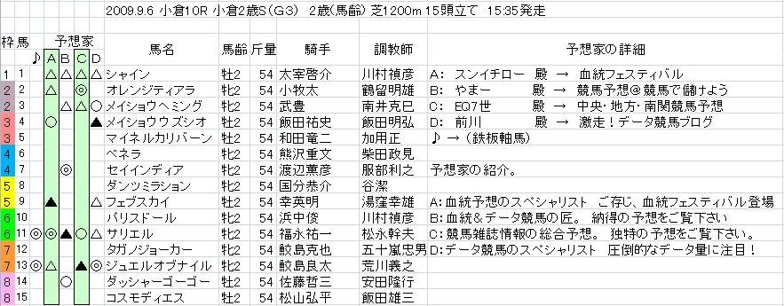 2009.9.5 土曜日の小倉開催の「鉄板軸馬」です。
