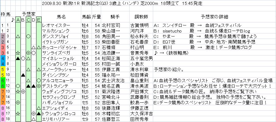 それでは新潟記念のブロガー競馬新聞です。